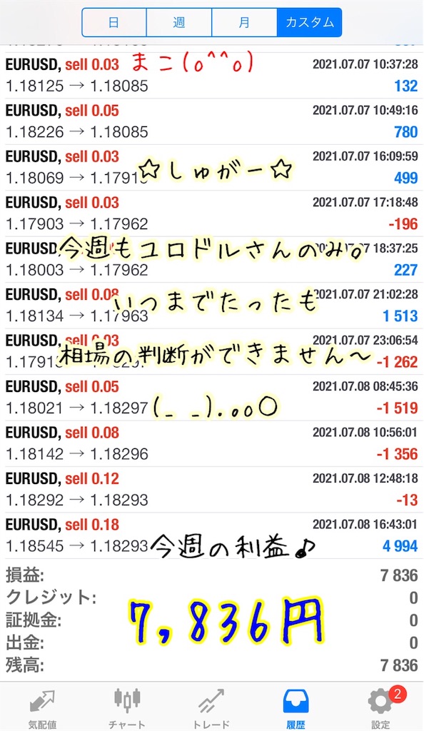 今週もドル円さんはお休みで、ユロドルさんのみの稼働でした☆